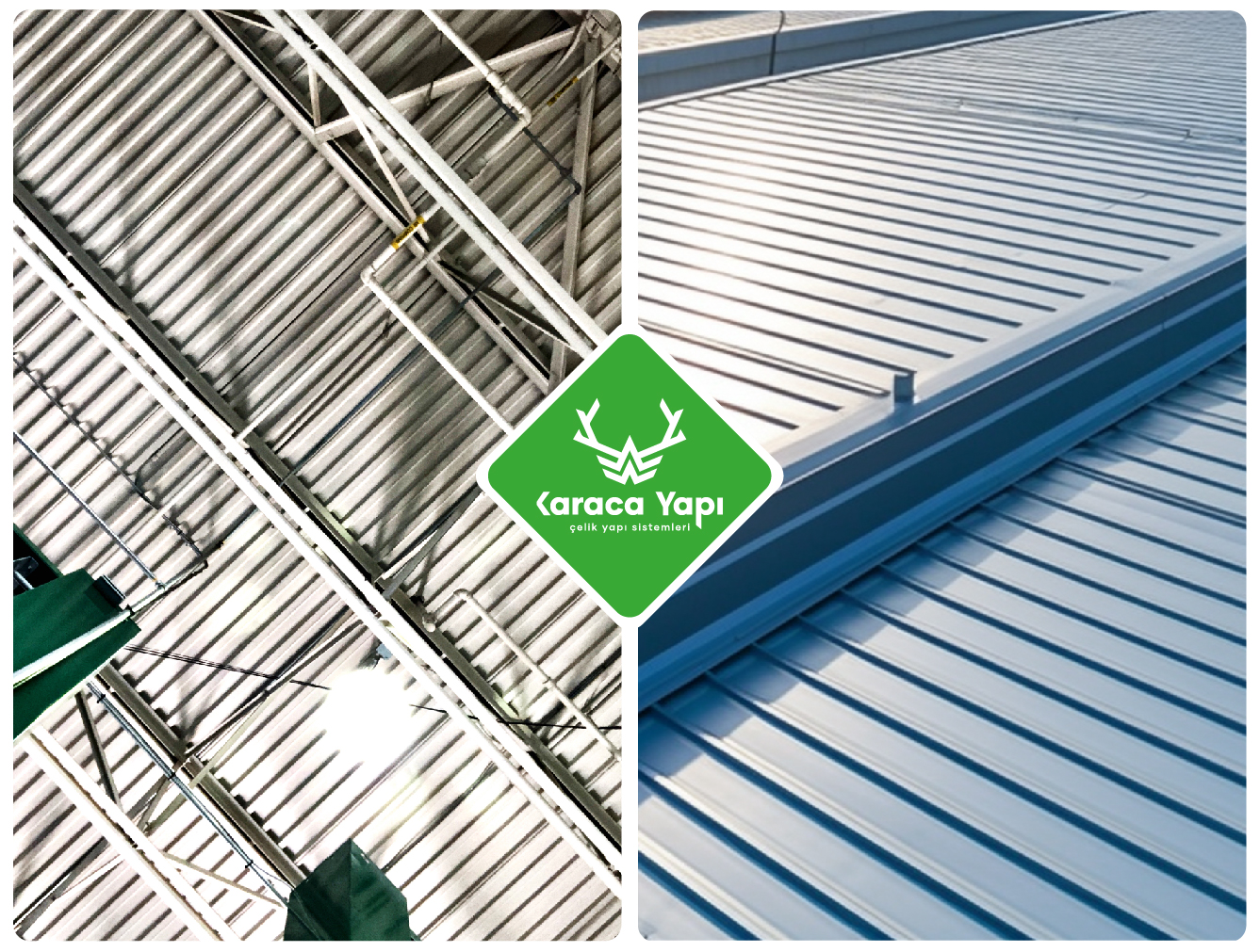 Karaca Çelik Yapı olarak, bu malzemeler ve kaplama yöntemleri ile kaliteli, güvenilir ve hızlı çözümler sunmaktayız. Çatınız, binanızın en önemli bölümlerinden biridir ve dört mevsim boyunca çeşitli hava şartlarına dayanabilmelidir. Uzun ömürlü bir kullanım için uzman kişiler tarafından uygulama yapılması gereklidir.
